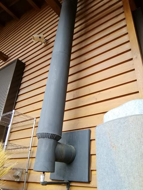 ハゼ折り中空煙突、シングル煙突よりは良いが断熱材が充填されていないため燃焼効率、ドラフトが悪い。