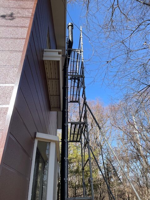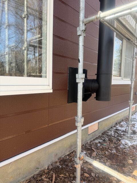 2025年12月14日 / 最終更新日 : 2025年12月14日 滝沢 公一 ブログ 長野県野辺山で薪ストーブの煙突工事をしました。 高所作業車が入らないため足場を設置して作業を始めました。 住宅の構造材を避け壁を開口後眼鏡石、煙突支持金具を取り付け壁に添って屋根上まで順次煙突を継ぎ足していきます。 断熱二重煙突が屋根上の所定の高さまで到達後チムニートップ取付、野外の煙突工事を終了。 薪ストーブsedanL(スドンL)を搬入、所定の位置に置き、背面だし煙突を取り付け室内側工事完了。 Follow me! FacebookXBlueskyHatenaCopy