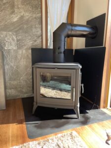 囲いの中に断熱二重煙突を通す。