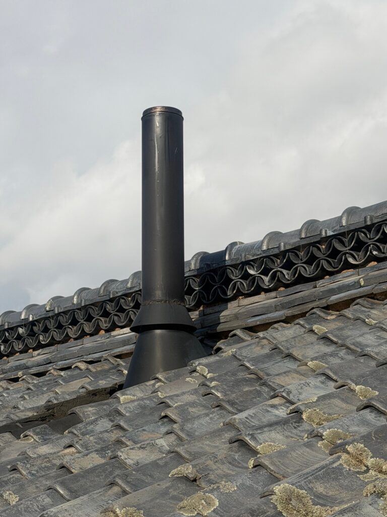 煙突の穴がむき出しだと雨が入りますが高所作業は非常に危険です。