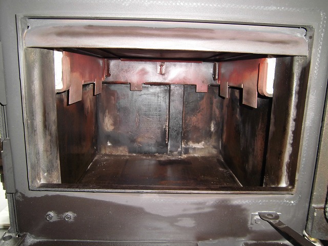 薪ストーブ内部の全ての部材を取り外し、灰を除去します。