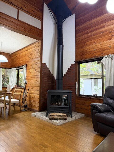 1台の薪ストーブで寒冷地長野県の大きなリビングを心地良い暖かさを保ってくれます。